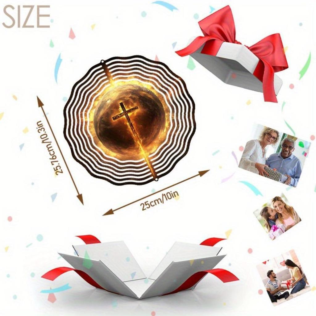 Flame Cross Metal Wind Spinner Outdoor Garden Decor Rotating Bird Deterrent for Yard Patio Balcony No Electricity Needed