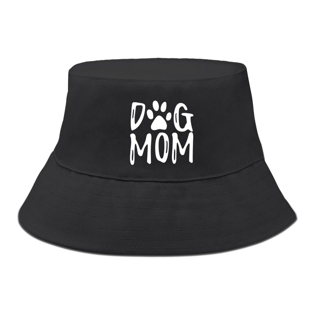 DOG MOM" Print Bucket Hat , White Dog Paw Men's Cap Simple Trendy Fashion Fishing Hat