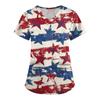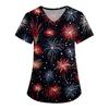 Women's Fashion V-Neck Short Sleeve Overalls With Pockets Print Tops Clothes