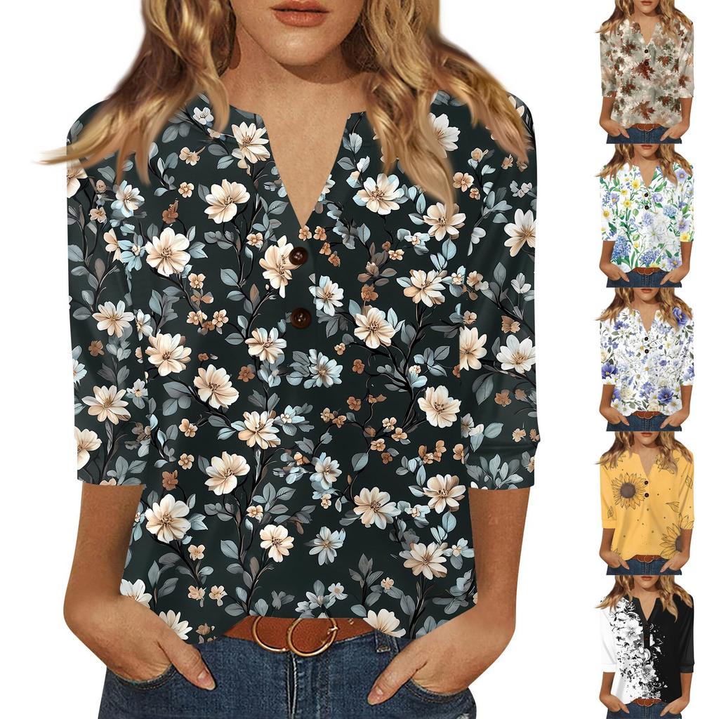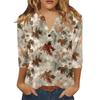 Women's T Shirt Print Button 3/4 Sleeve Daily Weekend Fashion Basic V- Neck Regular Top