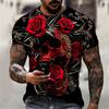 2025 Summer Men T-shirt 3D Graphic Bright Rose Print Vintage T Shirt Men Women Tshirt Casual Short Sleeve O-neck Streetwear