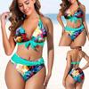 Women's Fashion Split High Waist Printed Bikini With Bra Pads And No Steel Bra Swimsuit