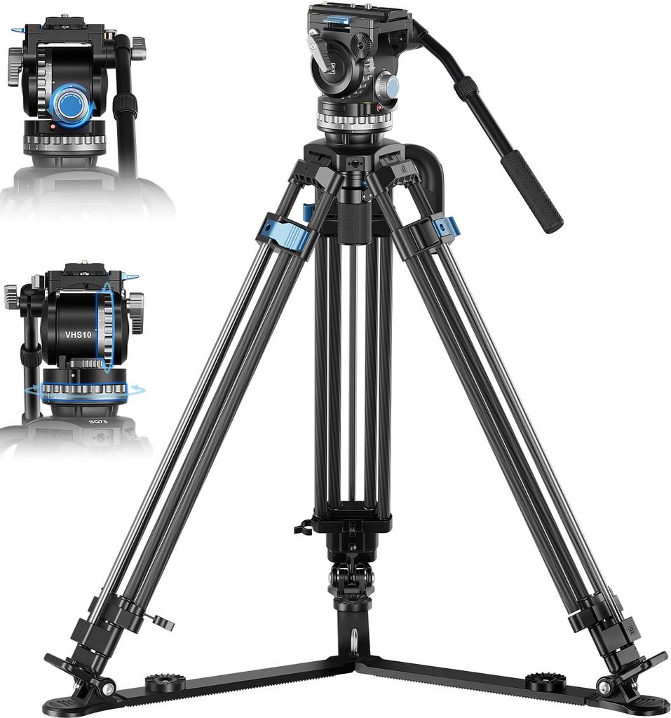 SIRUI Quick Series Height Adjustable Twin Leg Video Tripod with 75mm Half Bowl VHS10 Professional Fluid Head (SQ) + SQ75+VHS10