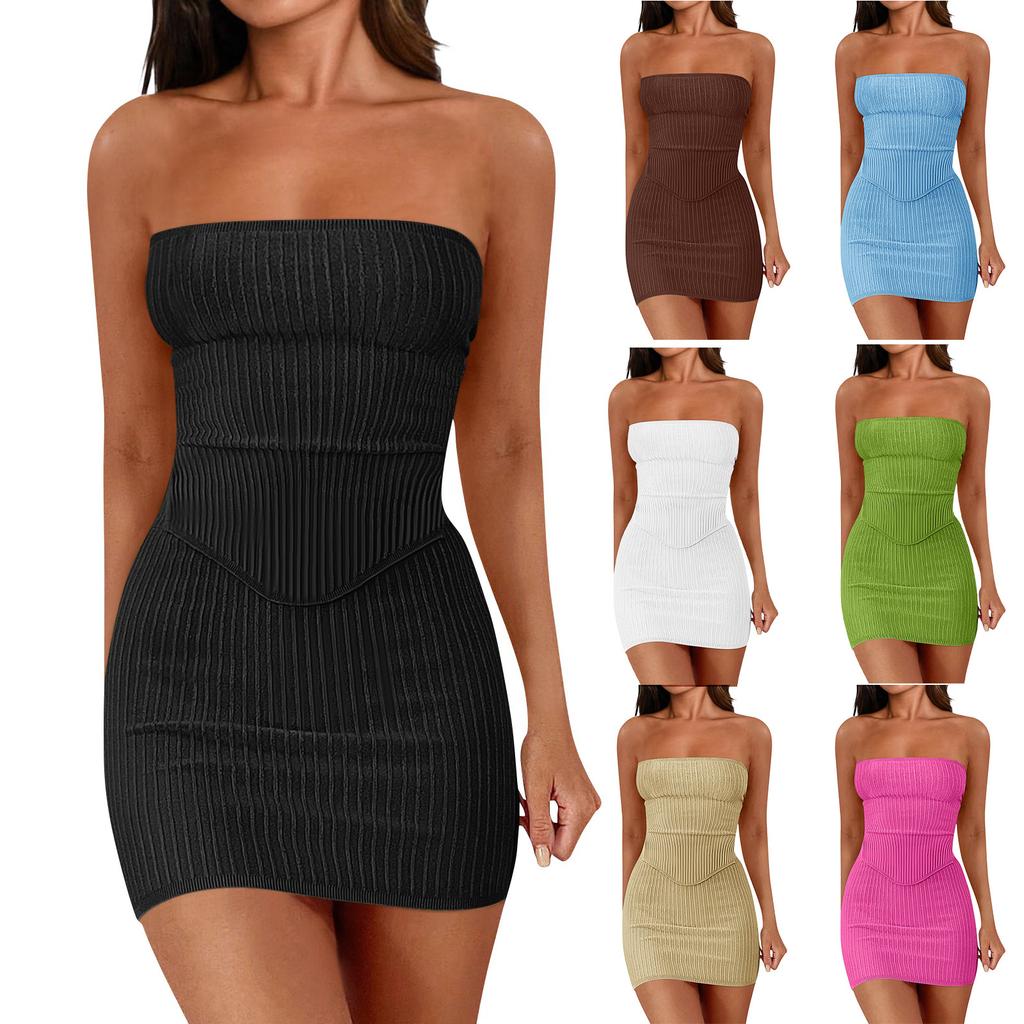 Womens Sexy Summer Two Piece Outfits Bandeau Going Out Crop Tops Bodycon Skirt Sets Dress