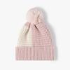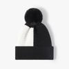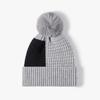 Hat, Female, Autumn and Winter with Fur Ball, Warm and Thickened, Padded Knitted Cap, Fashion Color Blocking, Outdoor Woolen Cap