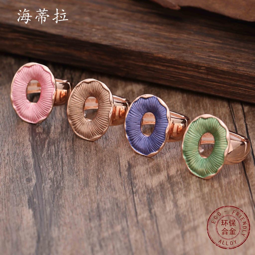 New Colored Donut Oval Hollow Alloy Ring, Simple Small Fresh Women's Elastic Ring