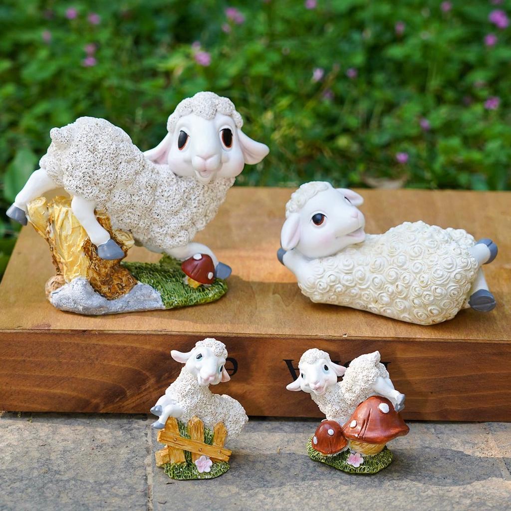 Creative Resin Leisurely Lamb Farm Statue,Sheep Statue,Lamb Figurine Cute Outdoor Decoration Animals Sculpture for Yard Patio Landscaping Decor