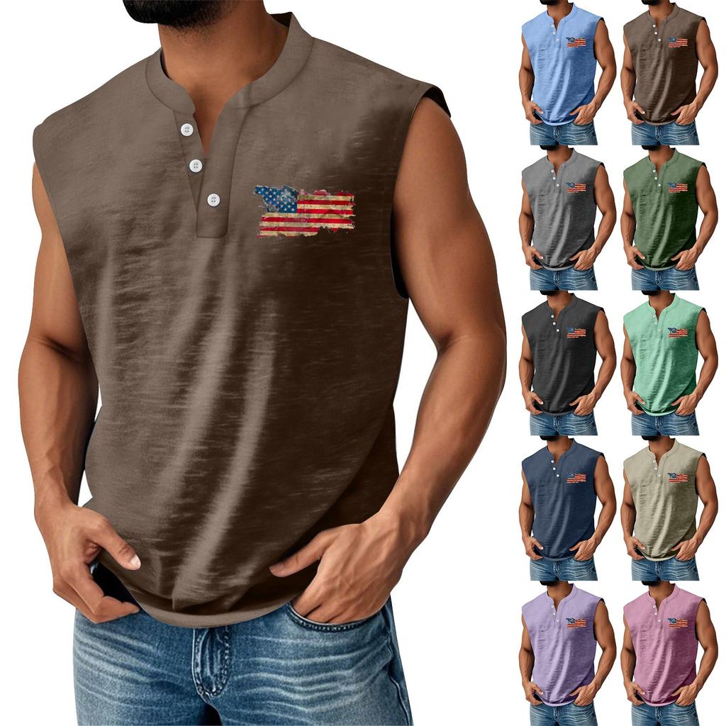 Men's Summer Independence Day Printed Sports Button Pocket Sleeveless Vest