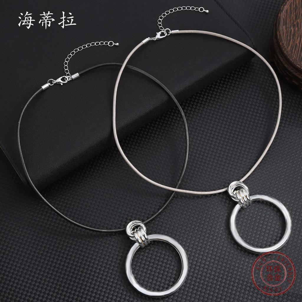 INS Wind Metallic Geometric Pendant, Exaggerated Silver-plated Butterfly Leather Rope Necklace, Street Fashion Circle Collar.