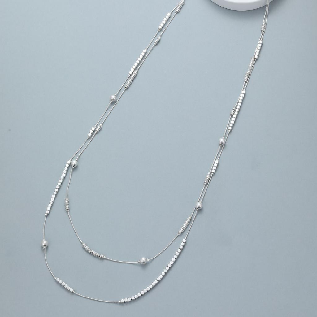Fashion Small Sugar Cube Beaded Double-layer Stacked Chain, Simple and High-end Women's Versatile Alloy Sweater Chain