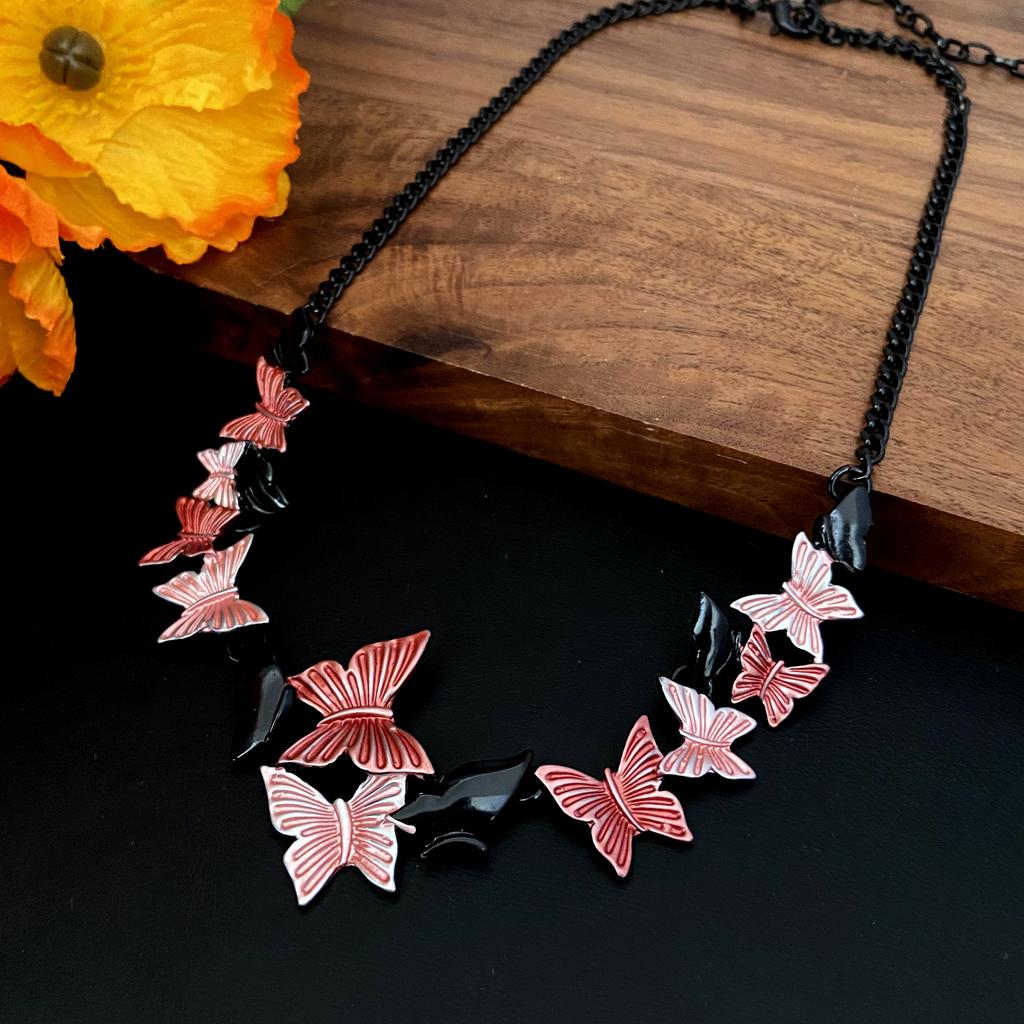 New Irregular Red Butterfly Alloy Necklace, Stylish and Cute Butterfly Ladies Versatile Gun Black Necklace