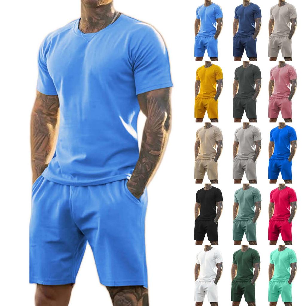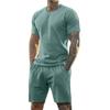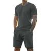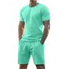Men's Solid Color Shoulder Short Sleeved Shorts Breathable Men's Casual 2-piece Set