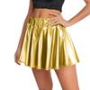 Women's Shiny Flared Pleated Short Skirt With Elastic Waist For Stage Performances