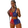 Women's European & American Contrast Color Sports Vest and Printed Pants Set