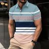 New Men's Casual POLO Shirt Digital Printing Striped Buttons Lapel Top T-shirt