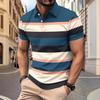 Fashion Men's Casual Polo Shirt V-neck Button Down Business Striped Versatile T-shirt Tops