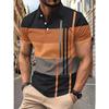 Summer Men's Daily Casual Stripe Printed Lapel Short Sleeve Polo Shirt Top