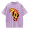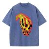 Street Style Skull Print Washed Denim Women's T-Shirt New Loose Crew Neck Short Sleeve Student Party Vintage Top