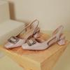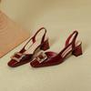 New One-word Sandals with Bag Head Women's Thick Heel Square Head Empty Shoes Red High Heels