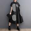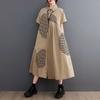 Loose Plus Print Medium Long Artistic Retro Short Sleeved Shirt Dress