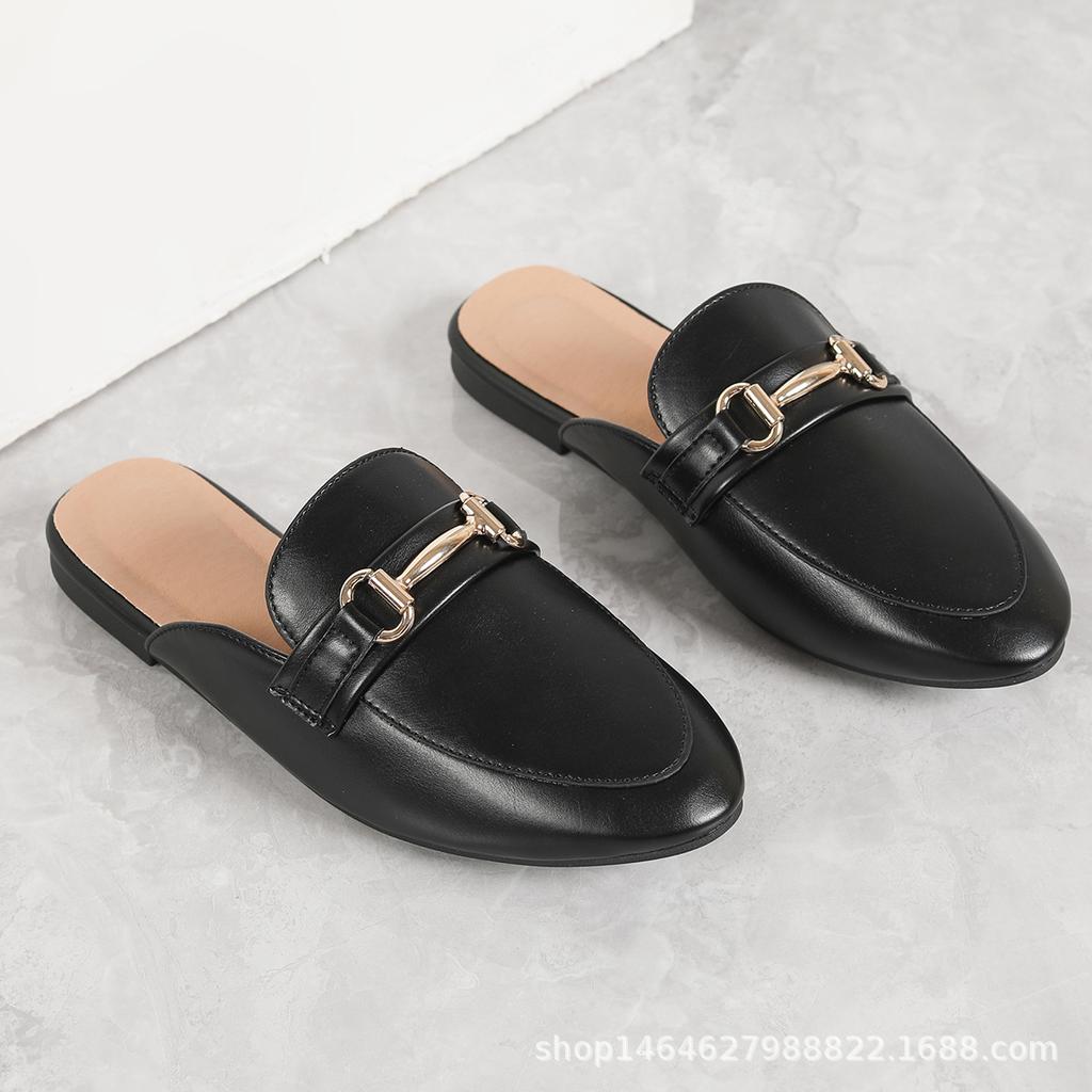 Women's Spring and Autumn New Metal Decorative Flat-bottomed Half Slippers Versatile Casual Retro College One-pedal Shoes