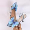 Ladies L Three-dimensional Butterfly Trim Stiletto Sandals Blue High Heels