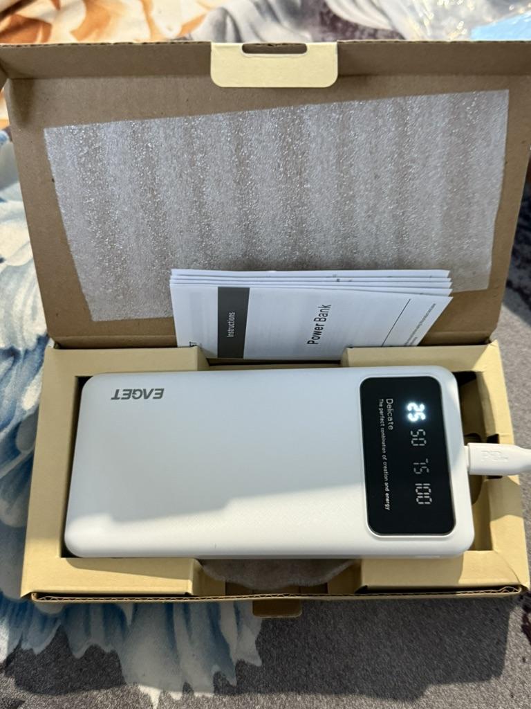 Delivered on time. It's problematic to buy something similar for this money. Charges and is charged. The real capacity is less than stated, but this was to be expected. Satisfied with the purchase