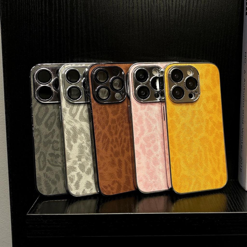 Leopard Print Leather-textured Phone Case Suitable for IPhone16 Protective Case 15promax and IPhone 15 with Lens Film