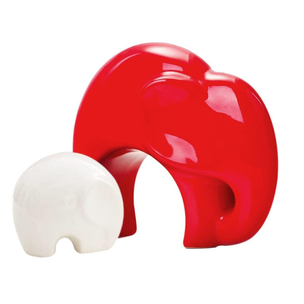 Home Décor Lucky Charm Elephant Mother and Kid Set | Piano Finish Ceramic Figures - (Set of 2 Piece, Red & White)