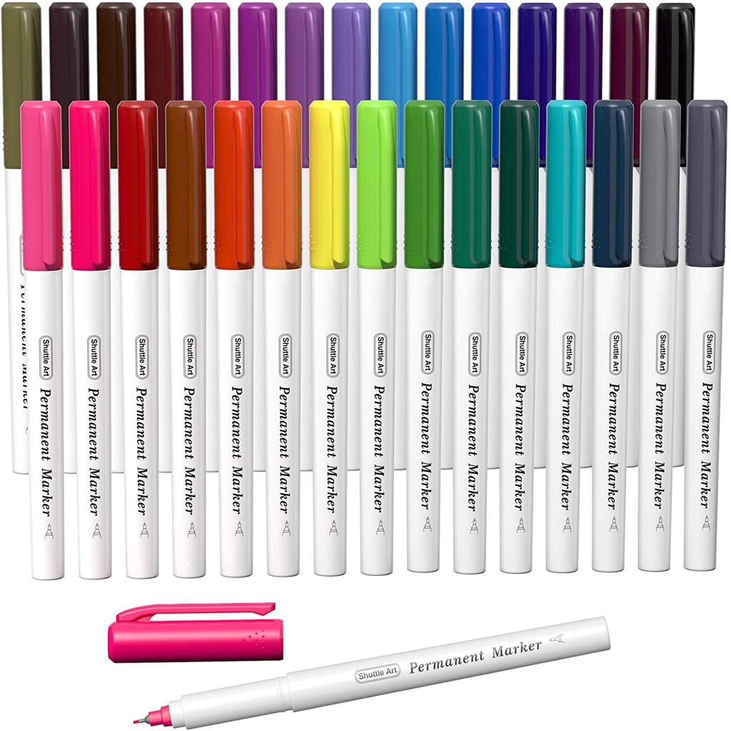 Shuttle Art Permanent Markers, 30 Extra Fine Tip, Assorted Colors, for Plastic, Wood, Stone, Metal, Glass, Kids and Adults, Coloring, Doodle Marking
