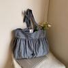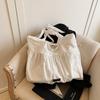 2025 Spring New Shoulder Bag Solid Color Cotton and Linen Large Capacity Tote Bag Pleated Sweet Lazy Wind Cloth Bag