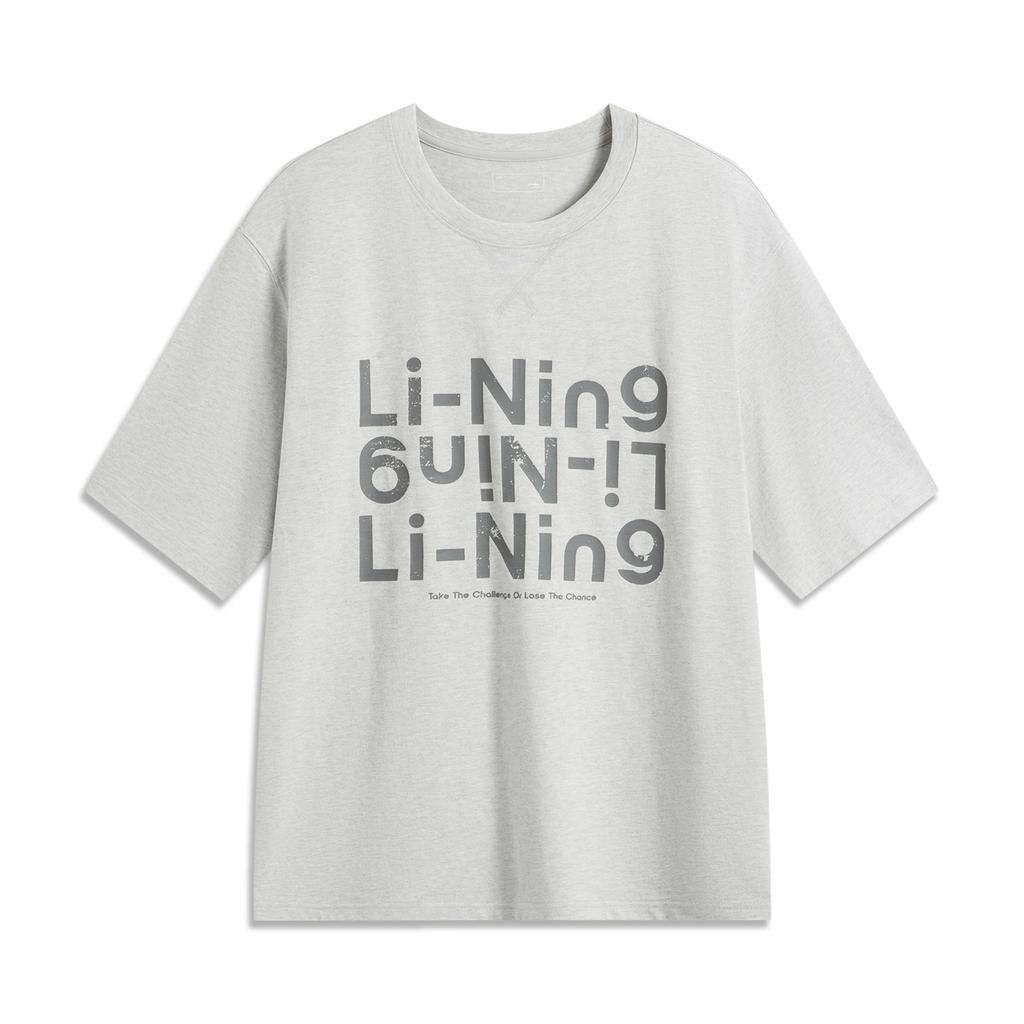 Li-Ning Comfortable Casual Simple Round Neck Pullover Breathable Short Sleeve T-Shirt Unisex Tops Flower-Gray Water-Drop-Gray AHSV253-3
