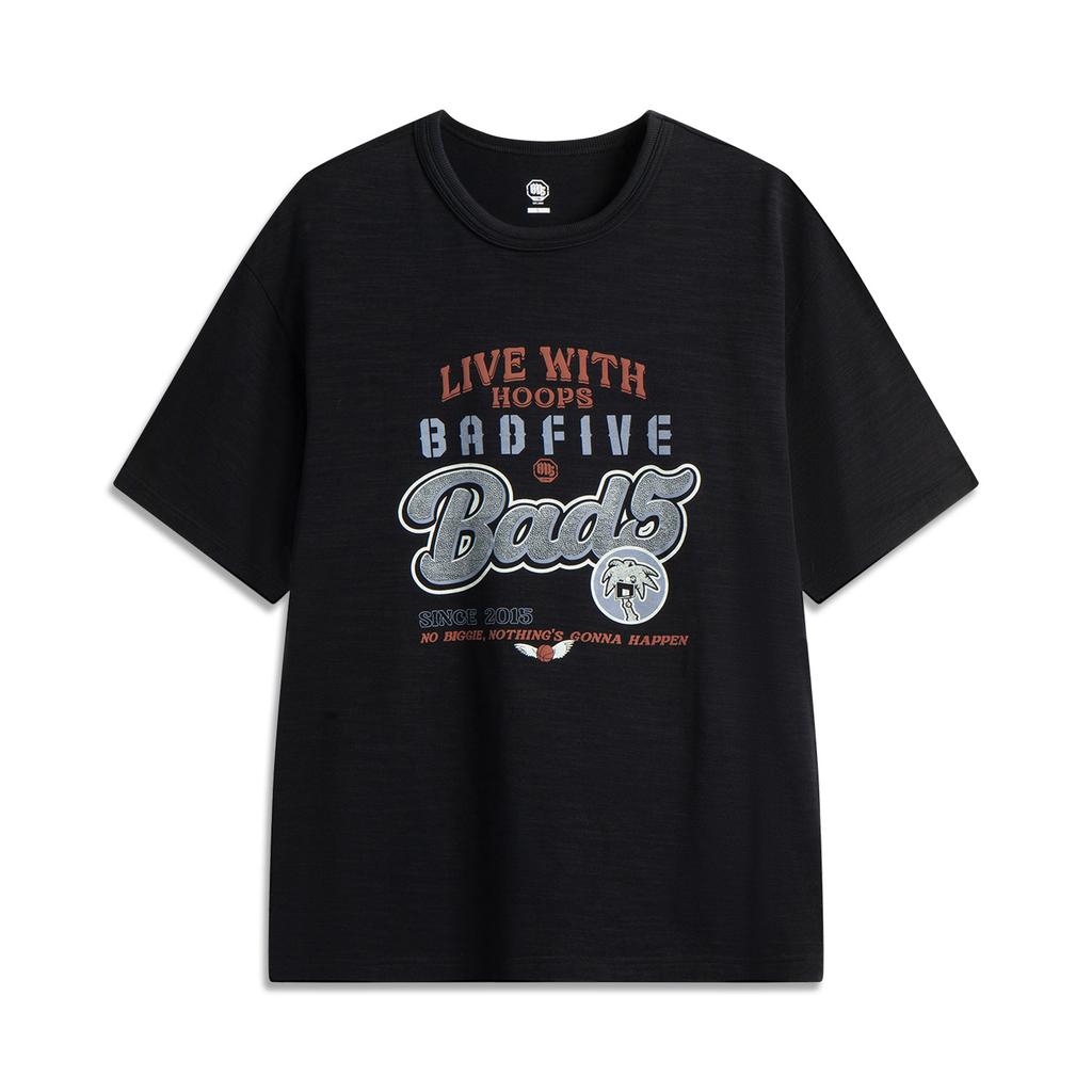 Li-Ning Basketball Series Printed Letter Crew Neck Breathable Versatile Loose Short Sleeve T-Shirt Men Tops Black AHSV217-5