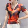 Introducing a chic and contemporary addition to your summer wardrobe: this Women's European Ombre Slimming Mesh T-Shirt. Designed for Summer 2025, this stylish blouse features a flattering V-neckline and short sleeves, perfect for warm weather. Made from high-quality mesh material, it offers a lightweight and breathable feel. The eye-catching ombre print adds a touch of sophistication, making it a versatile piece for any occasion.