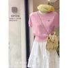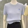 2025 Ice Silk Embroidered Knit Short Sleeve Straight Shoulder Women's Petite Summer Top