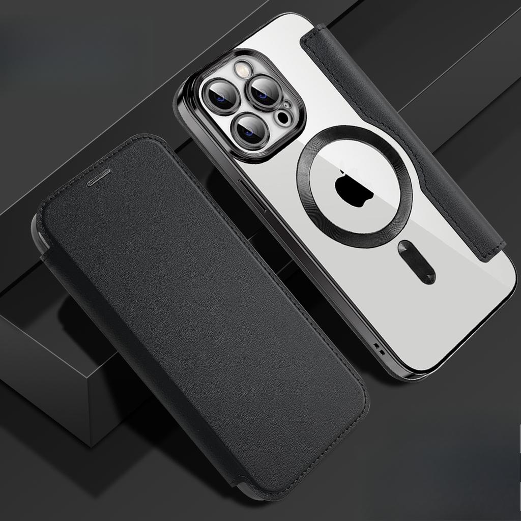 Flip Cover Leather Case Suitable for Apple 14promax Phone Case Electroplating, Iphone13 Transparent 12 Magnetic 11 Protective Case