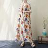 Summer V-neck Thin Cotton and Linen Large Size Loose Literary Holiday Wind Beach Skirt Retro Meat-covering Long Robe