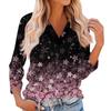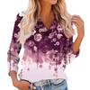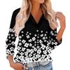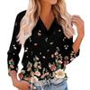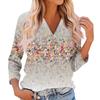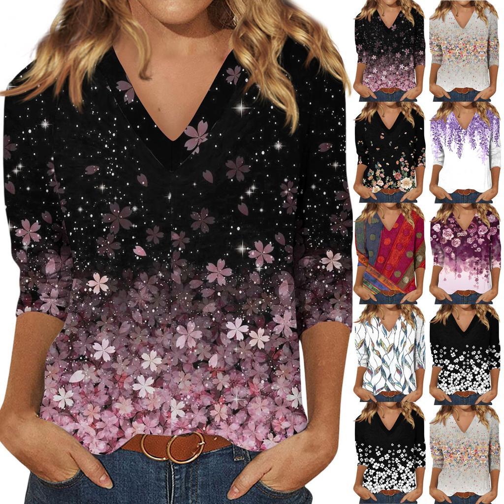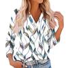 Women's Casual And Fashionable Flower Printing V-Neck Top With Seven Quarter Sleeves