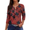 Women's Casual Fashion V-neck Loose Versatile Floral Print Three-quarter Sleeves