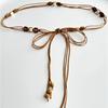 Wax Rope Hand-woven Wooden Bead Bow Waist Chain Retro Ethnic Style Temperament Belt Versatile Light Luxury Niche Jewelry