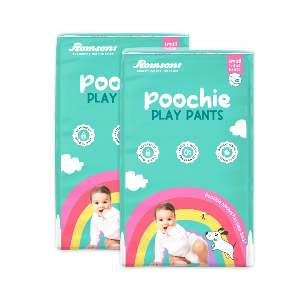 Romsons Poochie Play Pants Baby Diaper | Small Size | Leakproof Protection for Up To 10 Hours | 360° Comfort Fit | Suitable for 4-8 KG | Pack of 2