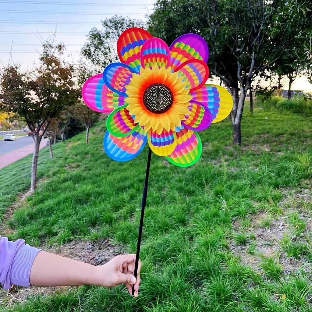 Sunflower & Insect Outdoor Pinwheel Toy for Kids - Colorful Hot Air Balloon Design