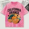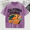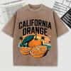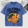 California Orange Pattern Washed T Shirt Men Summer Breathable O-Neck Tops Cotton Loose Short Sleeve Soft Unisex Tee Shirts