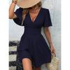 Women's Fashion Summer Spring Solid Color Print Short Sleeve V-Neck High Waist Casual Dresses