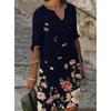 Women's Fashion Summer Spring Flower Pattern Print 1/2 Sleeves V-Neck Loose Waistline Casual Dresses