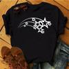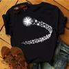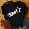 Maycaur Woman Star Moon Print Harajuku Summer Tshirts Casual Round Neck Short Slee Top Tee Shirt Women Black T-shirt Drop Ship