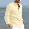 Designer Spring Summer Men's Casual Cotton Linen Solid Color Long Sleeve Shirts Loose Stand Collar Shirts