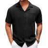 Men's Summer Casual Vacation Solid Color Shirt Cuban Collar Short-sleeved Shirt