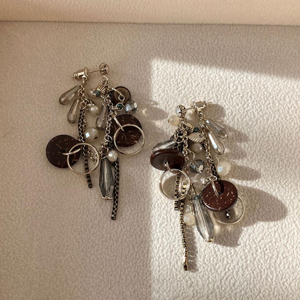 Zircon Coconut Shell Glass Fringed Earrings Fashionable Personalized Design Earrings Niche High-end Ethnic Style Earrings