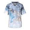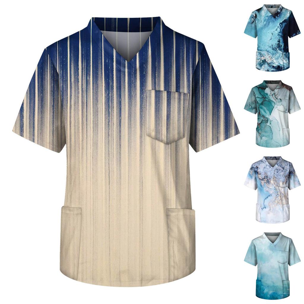 Men's Printed Short Sleeve V-neck Tops Working Pocket Blouse